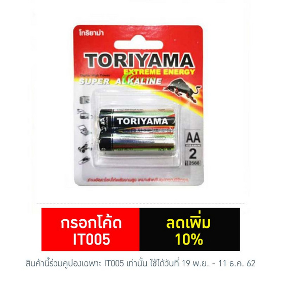 Toriyama Super Alkaline : Toriyama Super Alkaline 2AA (บรรจุ 2X20 แพค) ชื่อแบรนด์ : Toriyama รุ่น : Super Alkaline 2AA การรับประกัน : 1 ปี รายละเอียดสินค้า - ถ่านอัลคาไลน์ โทริยาม่า BCSUP ALK AA (แพ็ค2ก้อน) (บรรจุ 2X20 แพค) Call Center / ช่องทางการรับประกัน OSKA Head Office : 67/1 Soi Onnuch12, Onnuch Rd., SuanLuang, Bangkok 10250 (Thailand) Phone: +662-730-0022 Fax: (+66) 02-730-0133 Email: info@oskabatt.com""