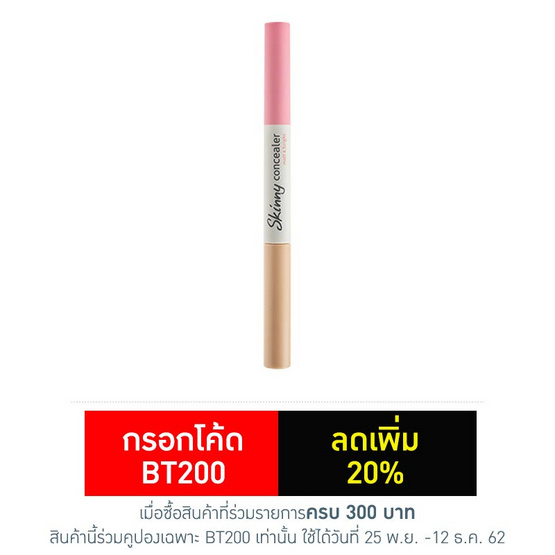 Cathy Doll เก็ต สเวท แมทท์ ทินท์ แอนด์ ลิป โค้ท 2.4g + 2.5g #04 Red Soccer แบรนด์ : Cathy doll เนื้อผลิตภัณฑ์ : Liguid ประเภทผิว : ทุกสภาพผิว อายุการใช้งาน : 3 ปี นับจากวันที่ผลิต สินค้าในกล่อง : Cathy Doll เก็ต สเวท แมทท์ ทินท์ แอนด์ ลิป โค้ท 2.4g + 2.5g #04 Red Soccer รายละเอียดสินค้า ทินท์เนื้อแมทท์เนียนนุ่ม บางเบา เกลี่ยง่าย ติดทนนานตลอดวัน ไม่ตกร่อง ไม่เหนียวเหนอะหนะ มาพร้อมกับลิปโค้ท เพื่อเคลือบริมฝีปากให้ติดทนในทุกกิจกรรม สามารถทาซ้ำได้ตลอดวัน โดยไม่ทำให้เป็นคราบ สร้างความมั่นใจให้ได้ในหลายลุคหลากสไตล์ คุณสมบัติ ทินท์เนื้อแมทท์เนียนนุ่ม บางเบา เกลี่ยง่าย ติดทนนานตลอดวัน วิธีการใช้ / How To Use - หมุนด้านลิปดึงหัวแปรง ทาที่ริมฝีปากจากด้านในสู่ด้านนอก แล้วใช้นิ้วเกลี่ยหรือนำแปรงทาลิปให้ทั่วริมฝีปาก รอให้แห้ง จากนั้นนำด้านลิปโค้ททาทับที่เรียวปาก เพื่อให้ลิปติดทนในทุกกิจกรรม คำที่เกี่ยวข้อง : Cathy Doll, เคทีดอล, ทินท์, ลิป, ทินท์ลิป, Tint, Lip