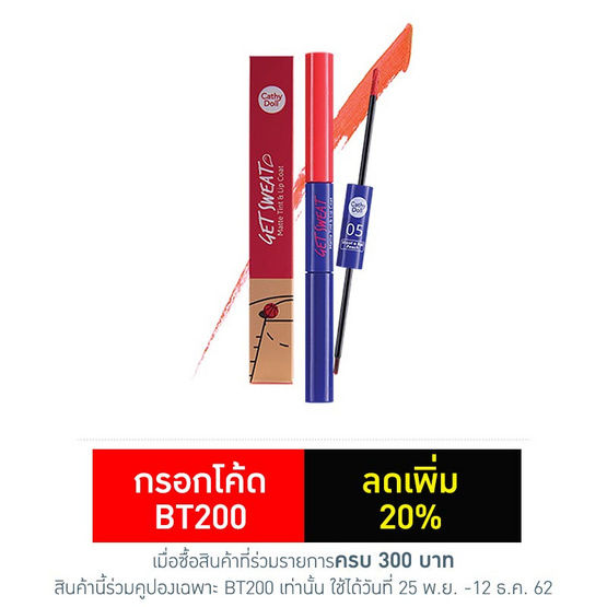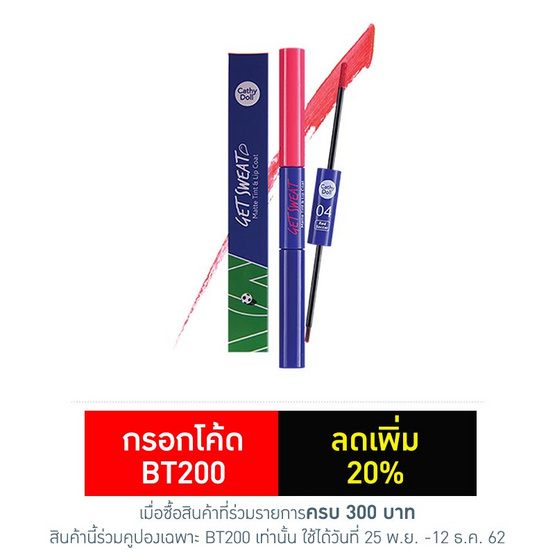 Cathy Doll เก็ต สเวท แมทท์ ทินท์ แอนด์ ลิป โค้ท 2.4g + 2.5g #04 Red Soccer Product Description